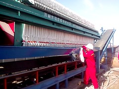 油泥废水处理用压滤机,广泛用于钻井油田产生的肥泥、废水、油泥处理,添加絮凝剂,通过压滤机和输料泵的相配合,依靠过滤介质(滤布),实现固液体分离,从而达到废泥干排的目的。